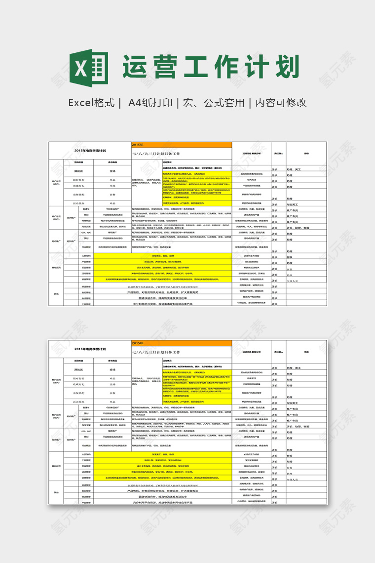 电商运营工作规划表excel模板