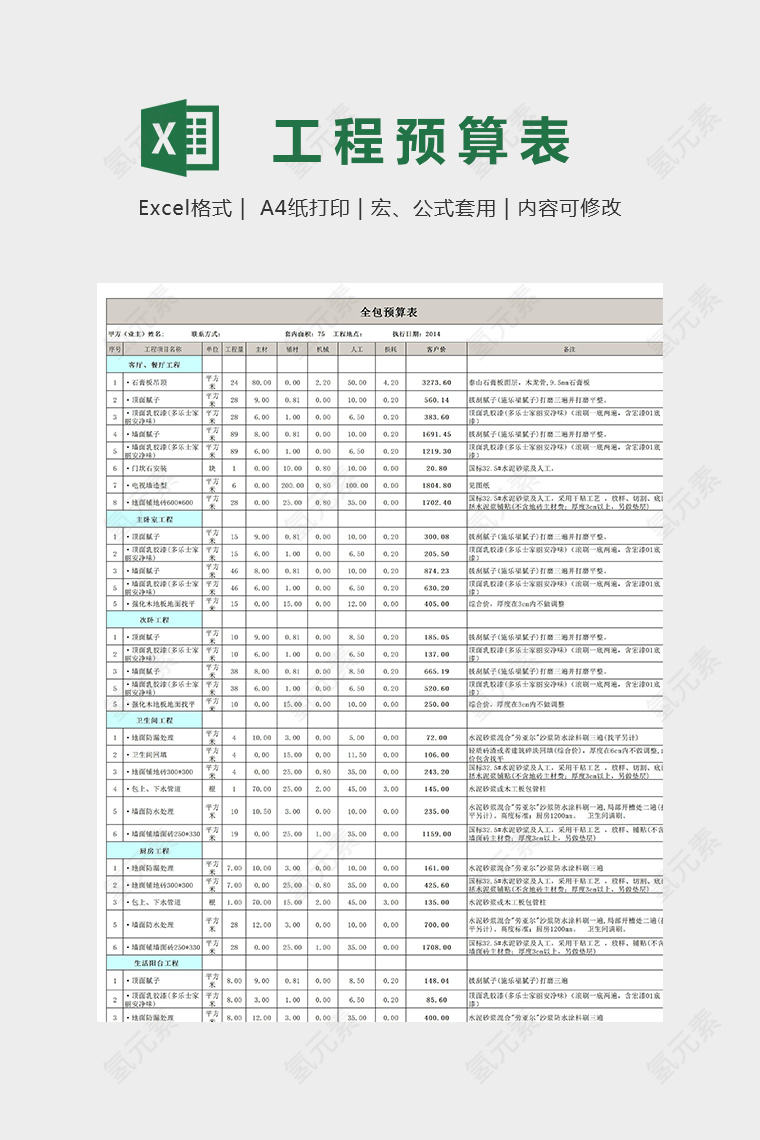 实用详细工程预算表模版