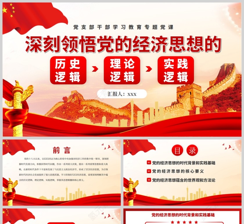 红色党政风深刻领悟习近平经济思想的历史逻辑、理论逻辑、实践逻辑PPT模板相关推荐