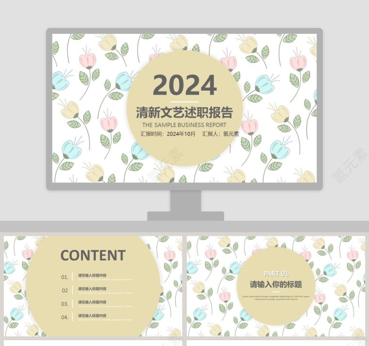 清新文艺述职报告梦幻甜美水彩小清新动态ppt模板
