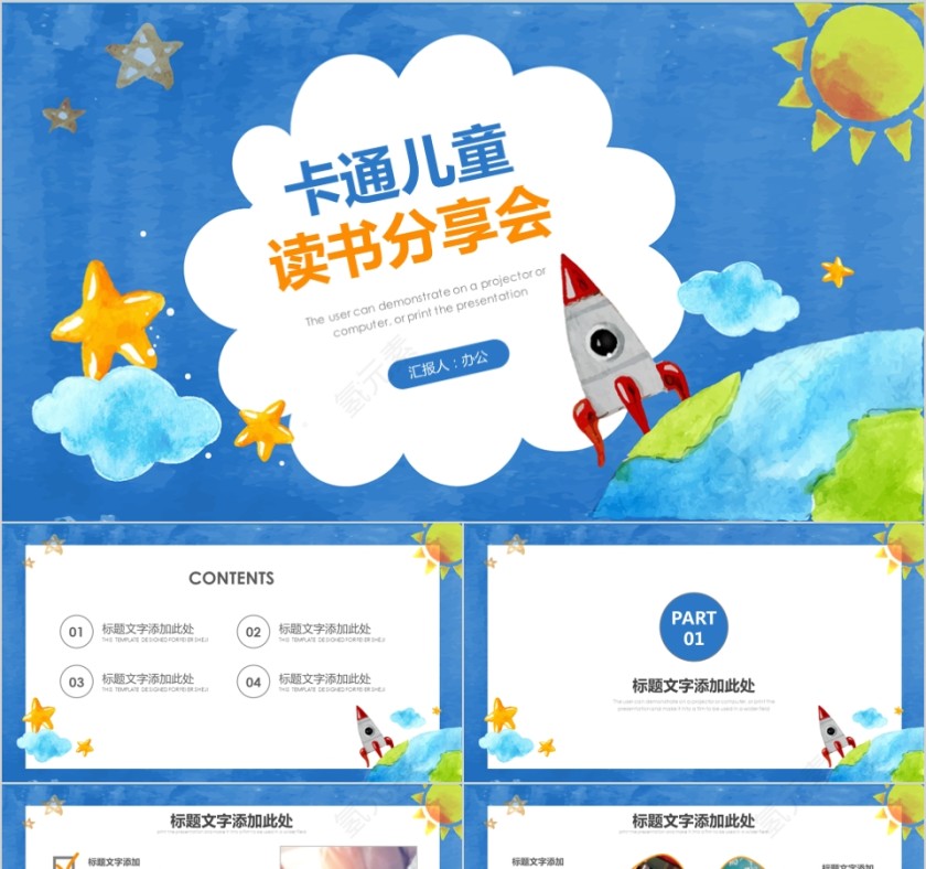 全新大高初中小学生读书分享会PPT模板儿童卡通阅读交流会古诗词鉴赏下载