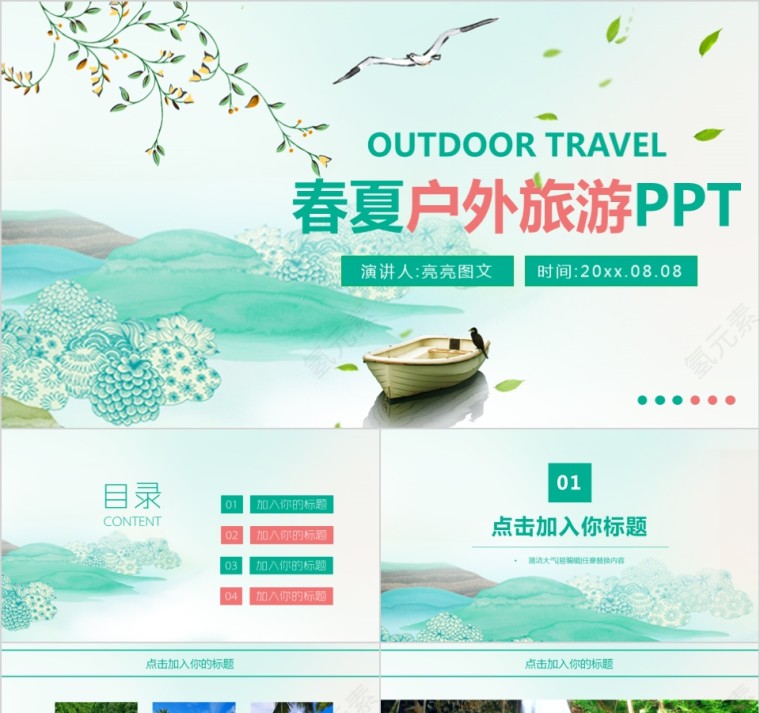 全新ppt模板户外假日旅游摄影图片展示电子相册旅行宣传说明讲解日记下载