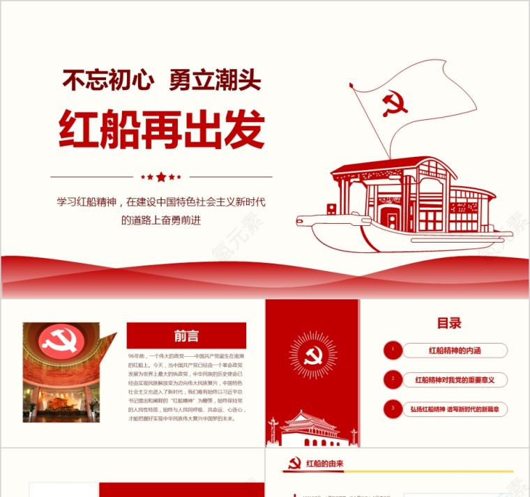 全新大气全面党建党课南湖红船精神再出发PPT模板下载