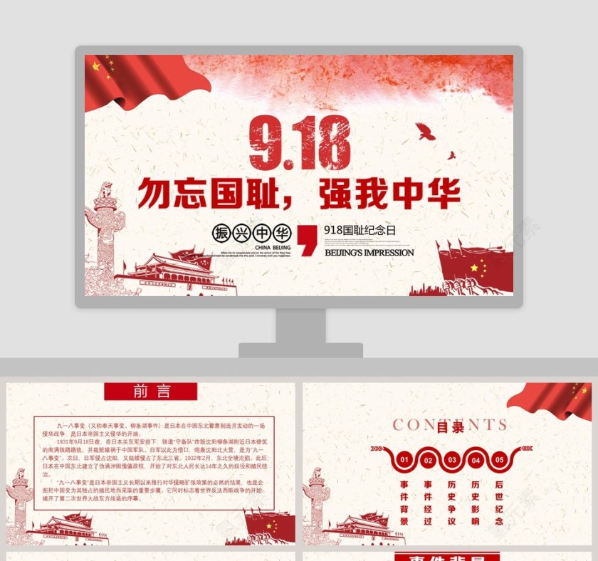 勿忘国耻,强我中华九一八事变纪念PPT模板