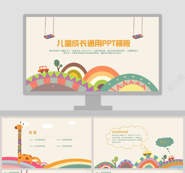 儿童成长通用ppt模板卡通教学课件ppt