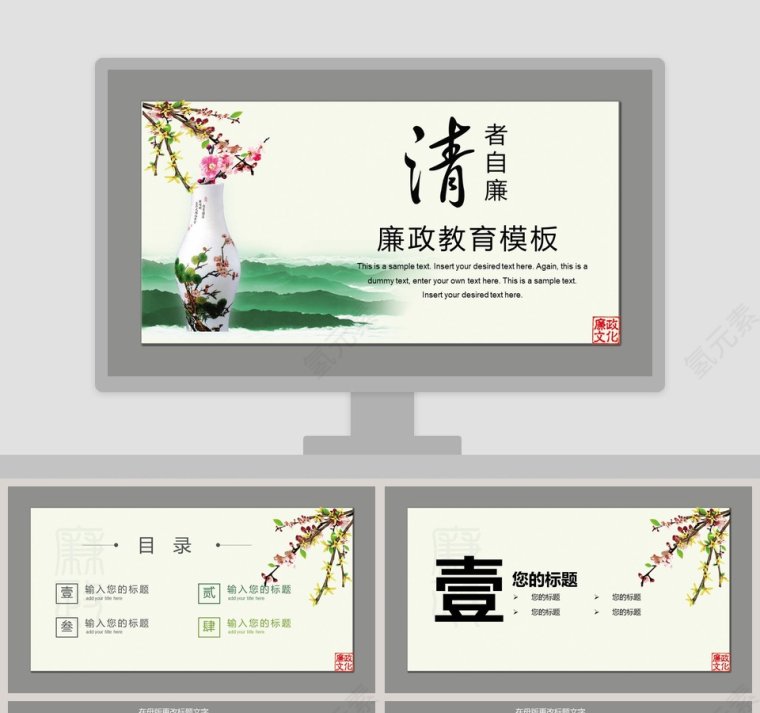 2018中国风清新廉政教育ppt模板廉政党课PPT