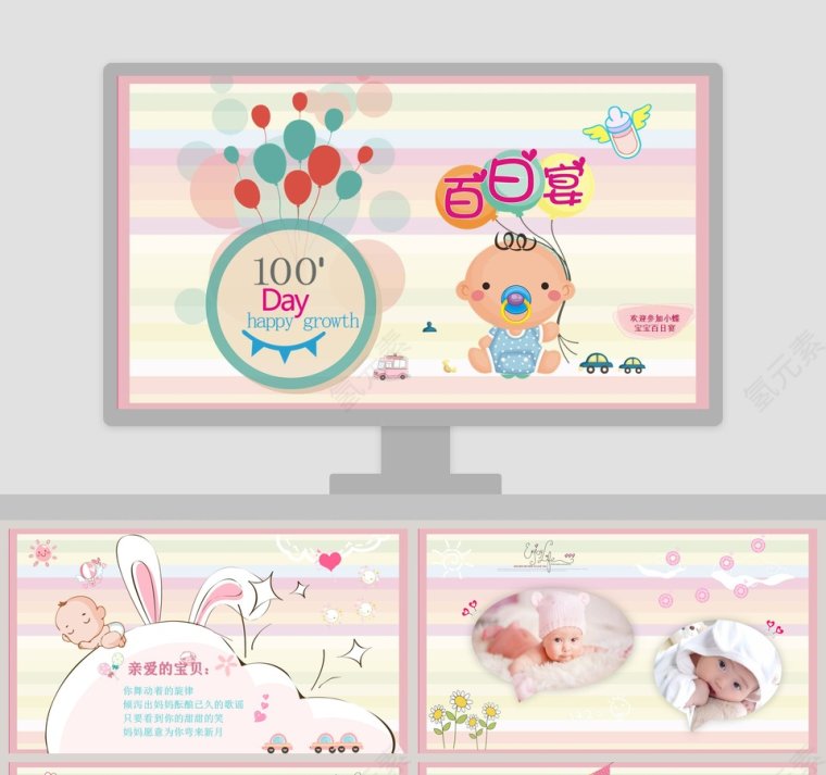 亲亲宝贝百日宴快乐成长音乐PPT模板