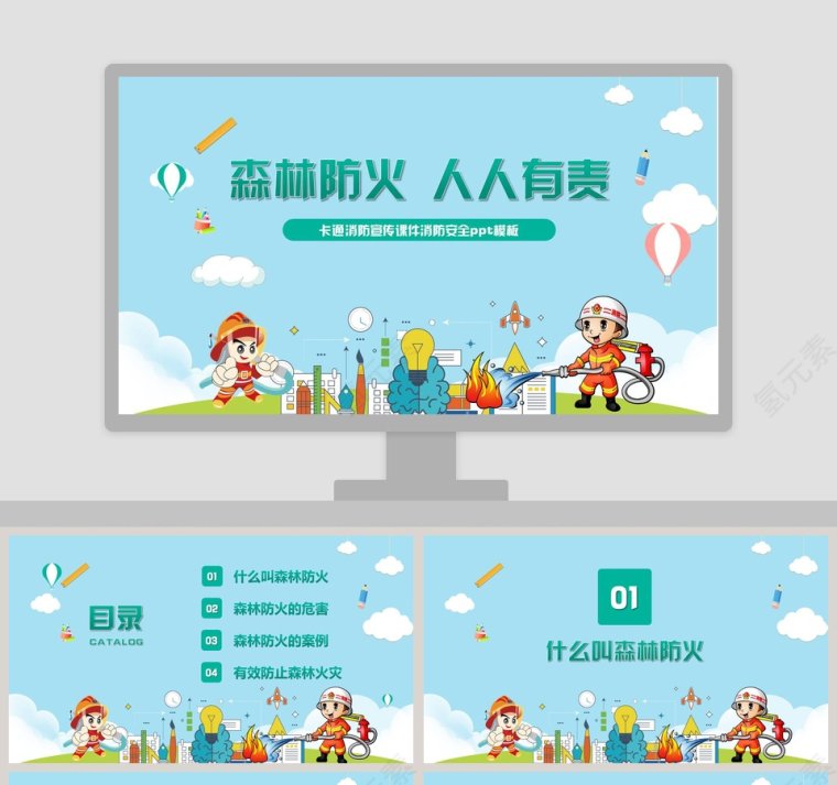 卡通消防宣传课件消防安全ppt模板