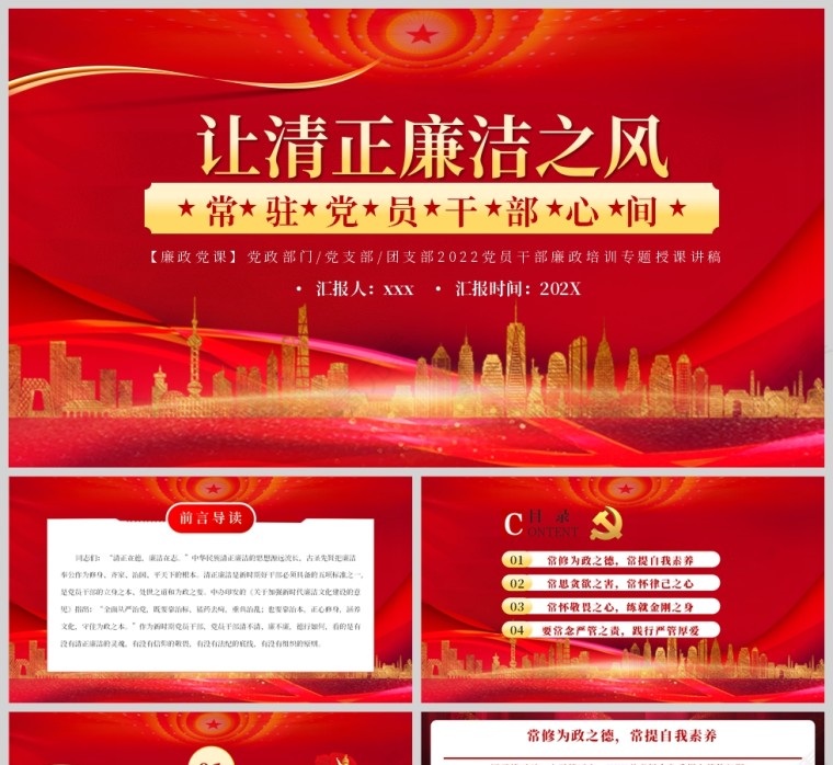 红色党建风让清正廉洁之风常驻党员干部心间PPT模板相关推荐