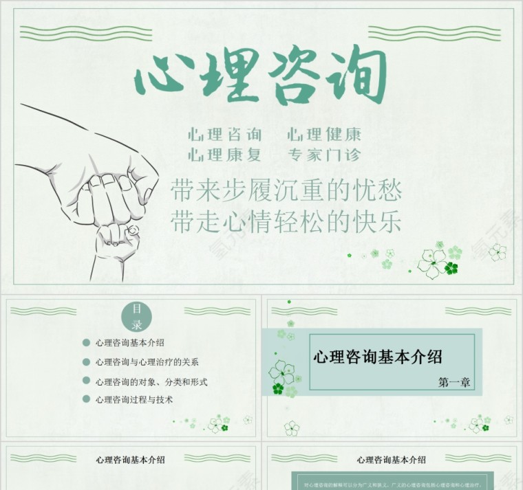 简约清新医学健康心理咨询PPT模板