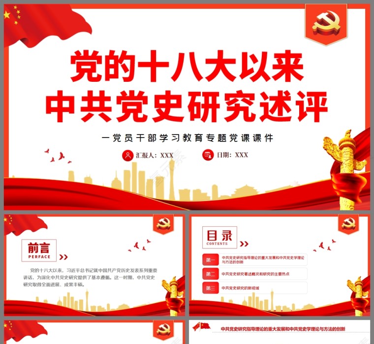 全新红色党政风党的十八大以来中共党史研究述评PPT模板下载