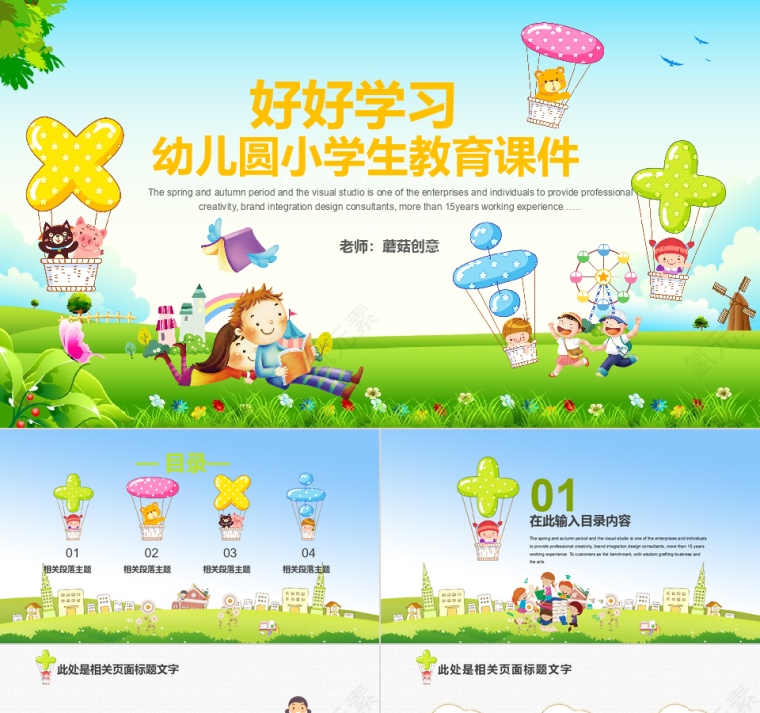 儿童卡通幼儿园教育教学课件PPT模板