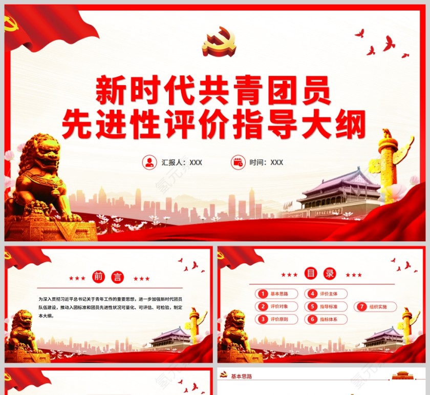 红色党政风新时代共青团员先进性评价指导大纲PPT模板
