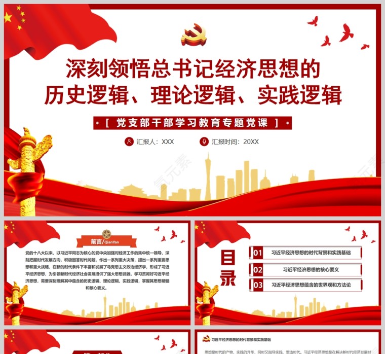 红色党政风深刻领悟总书记经济思想的逻辑PPT模板相关推荐