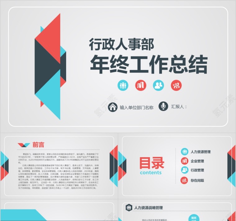 彩色年终行政工作总结PPT模板