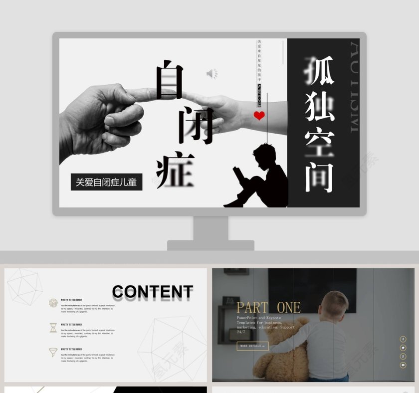 黑白简约关爱自闭症儿童教育培训PPT模板
