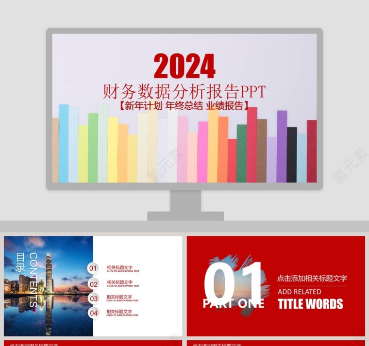 红色简约2019财务总结报告ppt