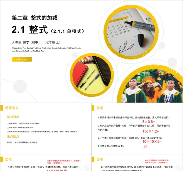 第二章 整式的加减-Please Enter Your Detailed Text Here The Content Should Be Concise And Clear Concise And Concise Do Not Need Too Much Text教学ppt课件