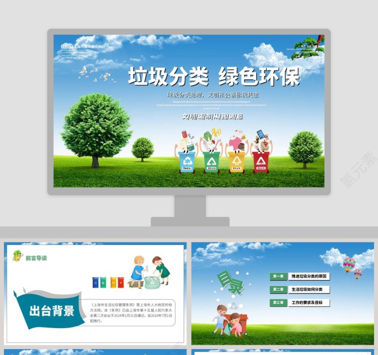 垃圾分类绿色环保幼儿园小学主题班会PPT模板
