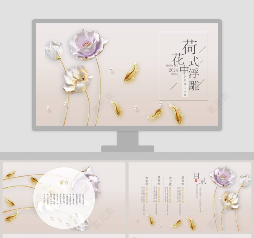 清新荷花炎炎夏日浪漫邂逅夏至PPT模板