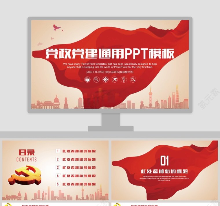 红色大气党政党建通用PPT模板