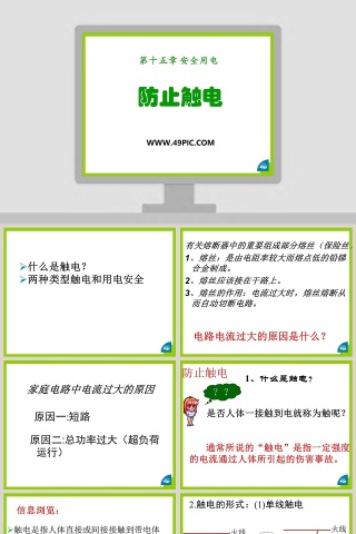 医护行业PPT模板:防止触电第十五章 安全用电教育内容
