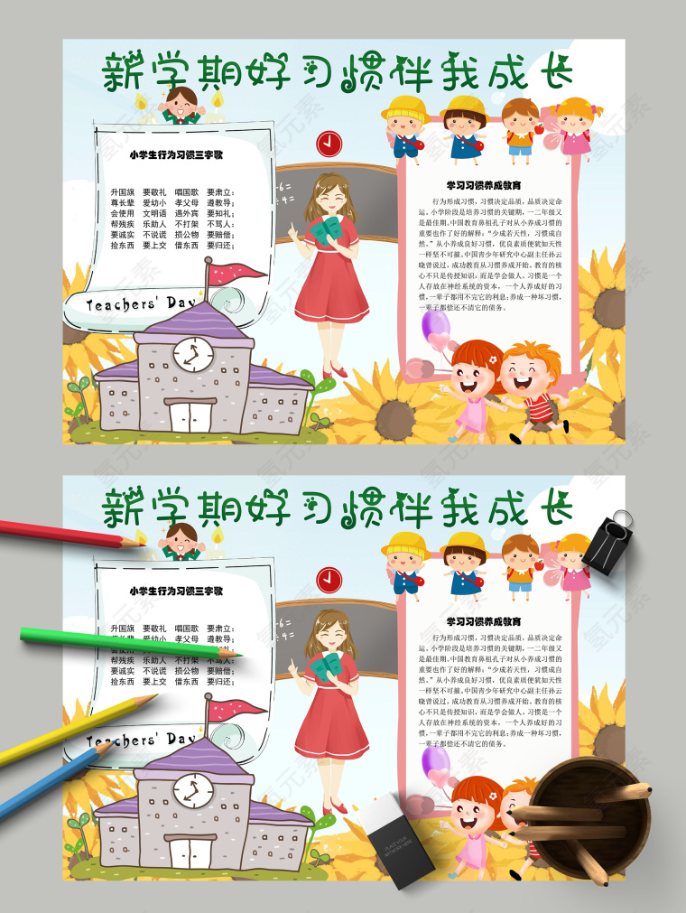 新学期好习惯伴我成长三字歌手抄报